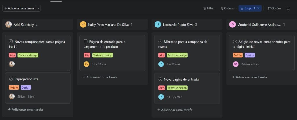 Utilizando a agregação da Asana por responsável você, como gerente, pode visualizar possíveis gargalos em seus processos:
