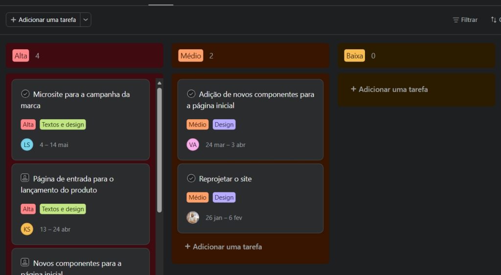 Dica TaskWork: Use as Etiquetas (Tags) coloridas para identificar o tipo de tarefa (ex: “Urgente”, “Bug”, “Melhoria”). Isso permite que qualquer pessoa bata o olho no painel e saiba o que é crítico.